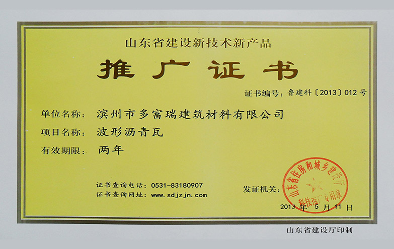 公司以研發和創新為核心,擁有3項發明專利,11項實用新型專利,5項外觀專利,首創中國波形瀝青屋面材料,達到歐盟同類產品質量標準。新生產基地占地30000余平方米,年產量為400萬平方米/年。