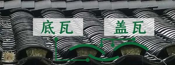 為了排水通暢,有了許多瓦片搭接方式。橫排相鄰的瓦一俯一仰,這種方法叫做陰陽瓦或者合瓦屋頂。上面的稱為蓋瓦,下方的稱為底瓦,上下搭接的底瓦形成了瓦溝。雨水從蓋瓦流向瓦溝,再經瓦溝排出屋面。
