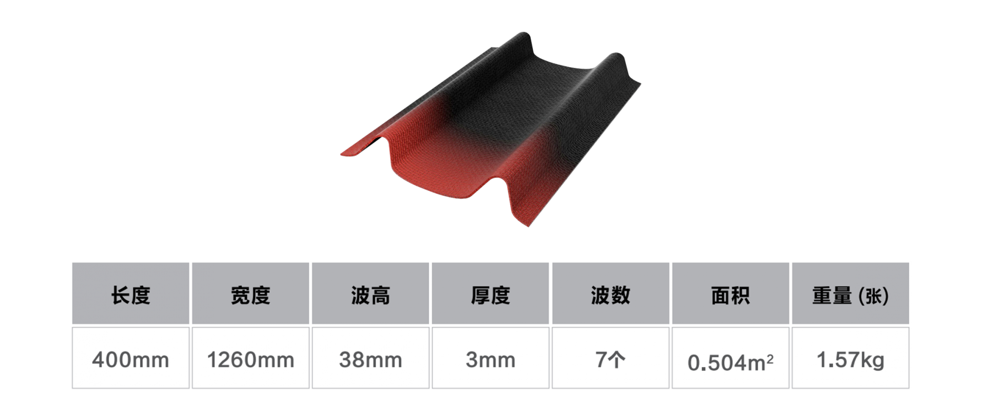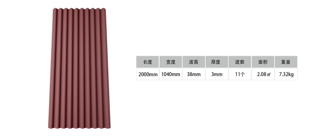 瀝青材質(zhì)防水效果非常出色,有效的搭接進一步保證防水。采用波浪形造型有效帶走瓦下熱量和潮氣,隔熱和通風除濕效果極佳。