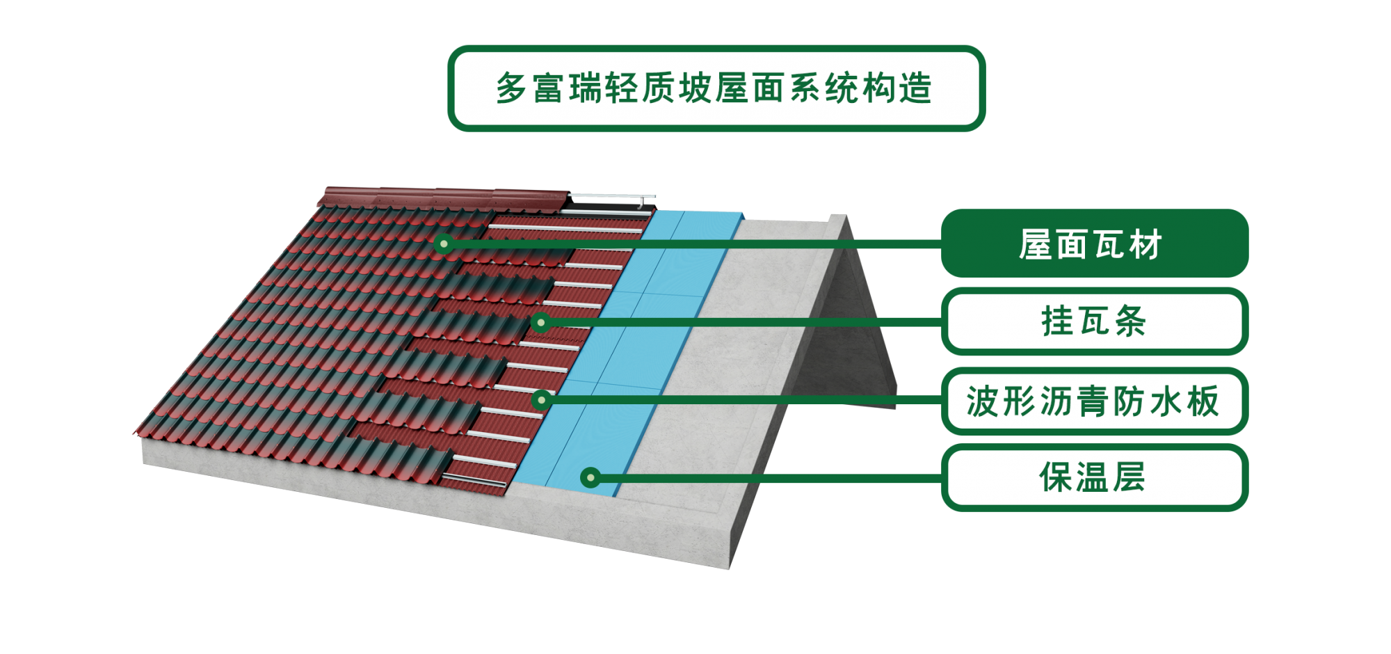 波形瀝青防水板可搭配各類瓦材面層,系統(tǒng)結(jié)構簡潔、施工方便快速度。