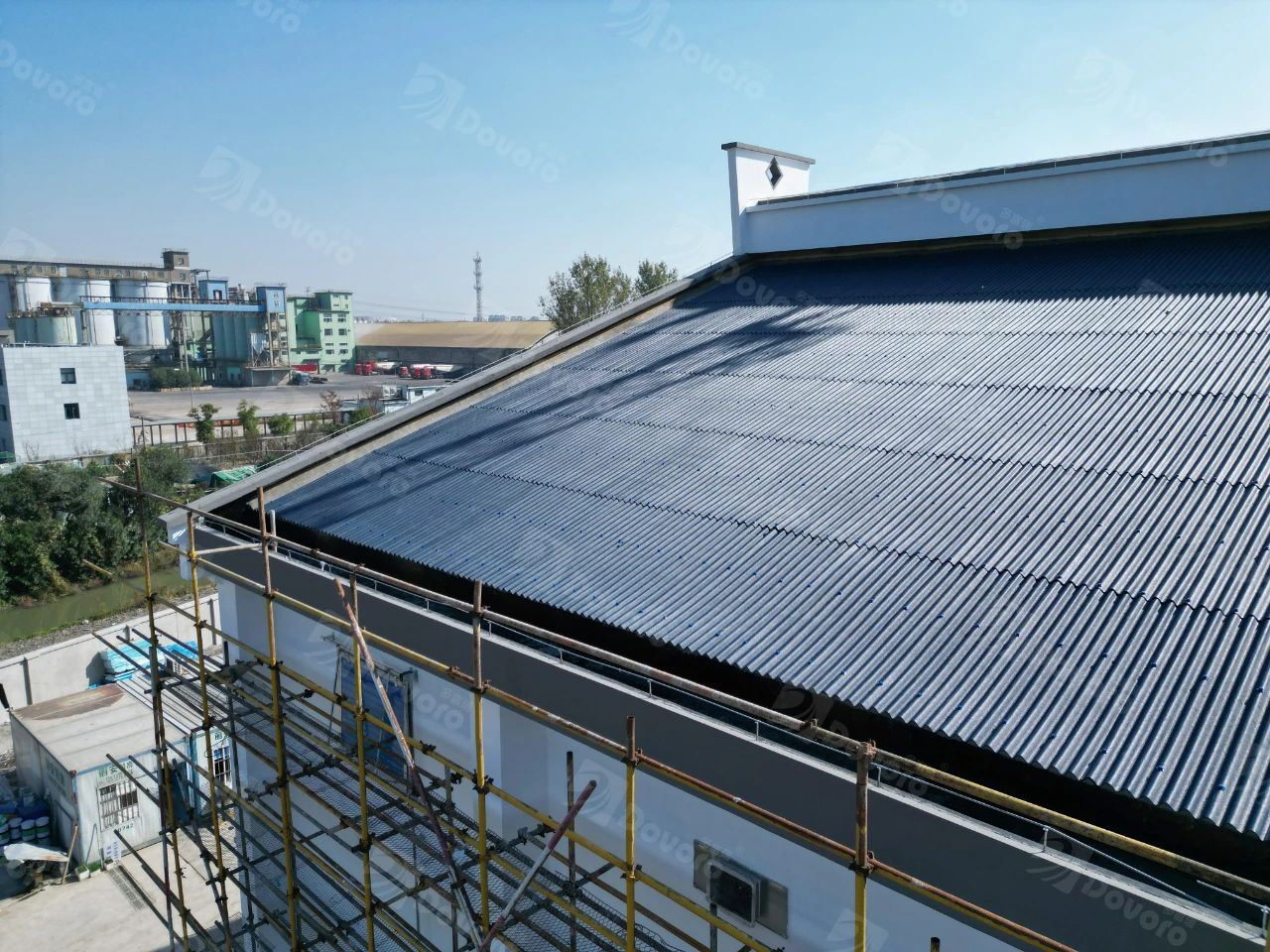 糧庫單體建筑俯視圖,采用多富瑞波形瀝青瓦施工