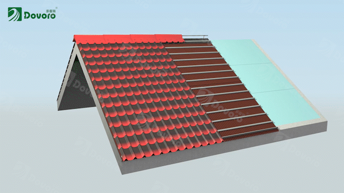 即使是在多富瑞輕質坡屋面系統中,除了使用波形瀝青瓦,也可替換任意干掛瓦材,同樣可以獲得精簡的屋面構造。