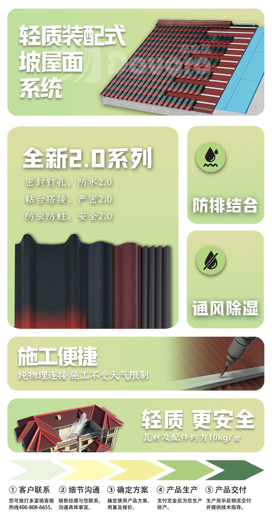 多富瑞輕質坡屋面系統為“碳中和”貢獻出一份力。輕質坡屋面系統的施工過程中,不產生污水廢氣,無需大型設備,對環境無污染,能源消耗極小。