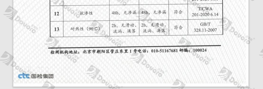 根據國家建筑材料檢測中心的檢測報告,波形瀝青瓦的耐熱性在90攝氏度的高溫下,性能依舊穩定。在多富瑞2.0系列的產品新增自粘聚合物改性瀝青密封帶,可保證產品100攝氏度下的耐候穩定性。
