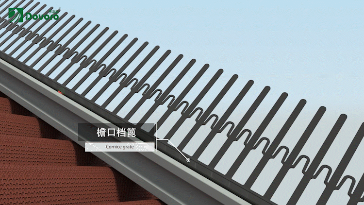 在檐口的位置,防水板和屋面瓦之間,安裝檐口擋篦。即杜絕了鳥類進入,還保證了上下層之間有良好的通風效果,利于帶走潮濕的空氣。