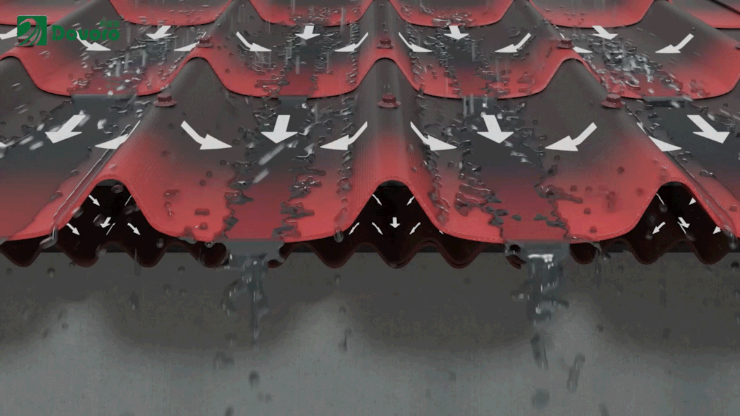 A:多富瑞輕質(zhì)坡屋面系統(tǒng)采用了防排結(jié)合的設(shè)計,除了在材料里加入瀝青以達到優(yōu)異的防水性能,還使用波紋設(shè)計以達到更有效的排水效果,在材料和結(jié)構(gòu)上相輔相成。