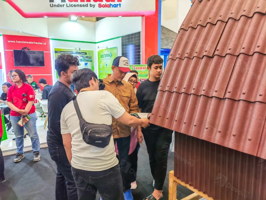 多富瑞印度尼西亞建材博覽會上的亮相,展示了波形瀝青瓦的卓越品質(zhì),與當(dāng)?shù)匦枨蟮钠鹾希艿搅藦V大業(yè)內(nèi)人士和觀眾的一致好評。“科技改變居住方式,領(lǐng)航輕質(zhì)綠色建筑”多富瑞將繼續(xù)不斷創(chuàng)新,致力于為建筑業(yè)提供更多優(yōu)質(zhì)、可靠的屋頂解決方案。