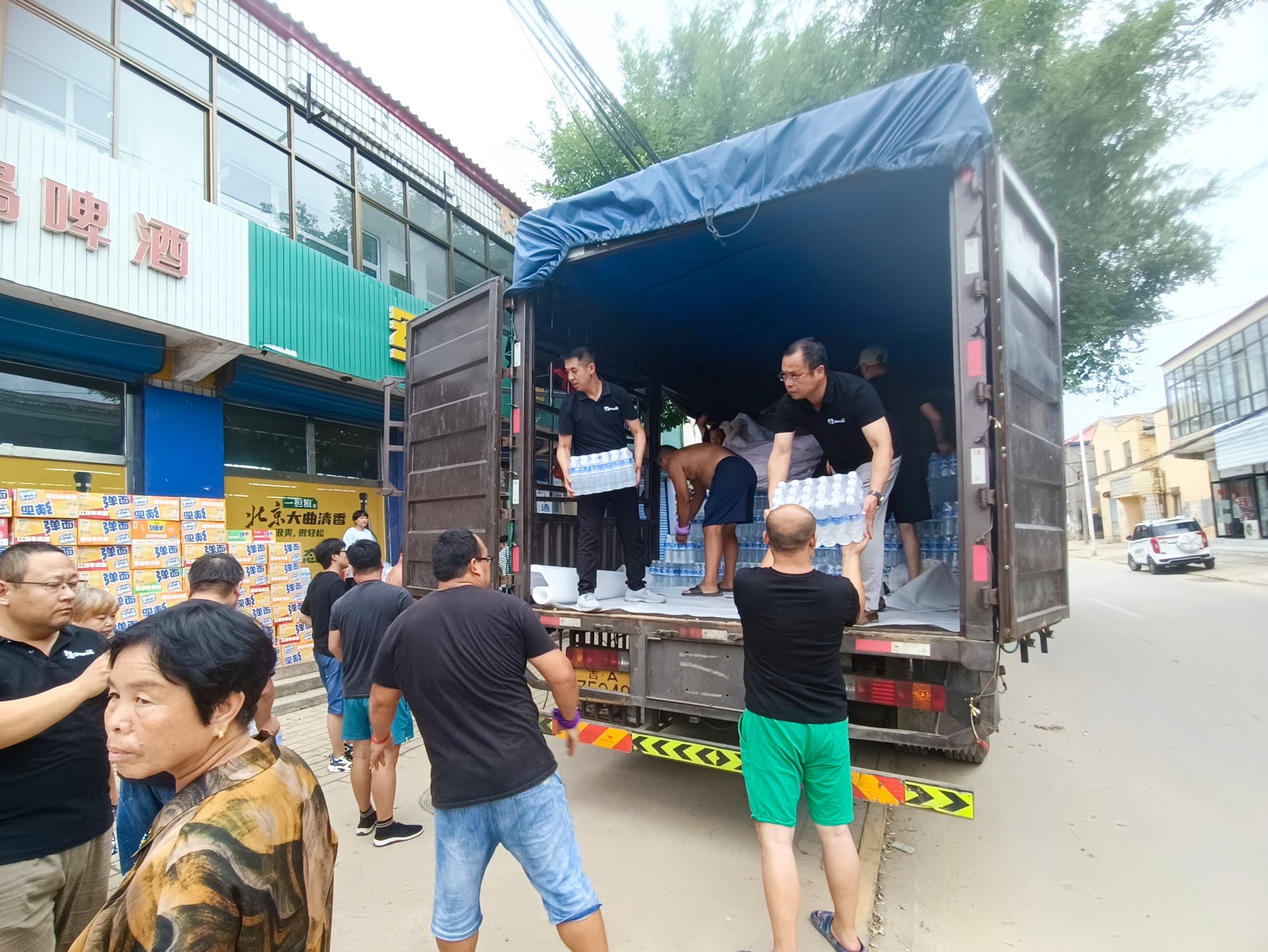 在了解到涿州搶險救災的緊迫和物資短缺的情況后,多富瑞立即展開馳援涿州的準備工作,抽調人員,成立支援小組,緊急采購物資。8月6日清晨,兩輛滿載應急食品、飲用水、生活用品的車輛,由多富瑞董事長趙民先生親自帶隊,從山東濱州多富瑞生產基地駛出,直赴災區。