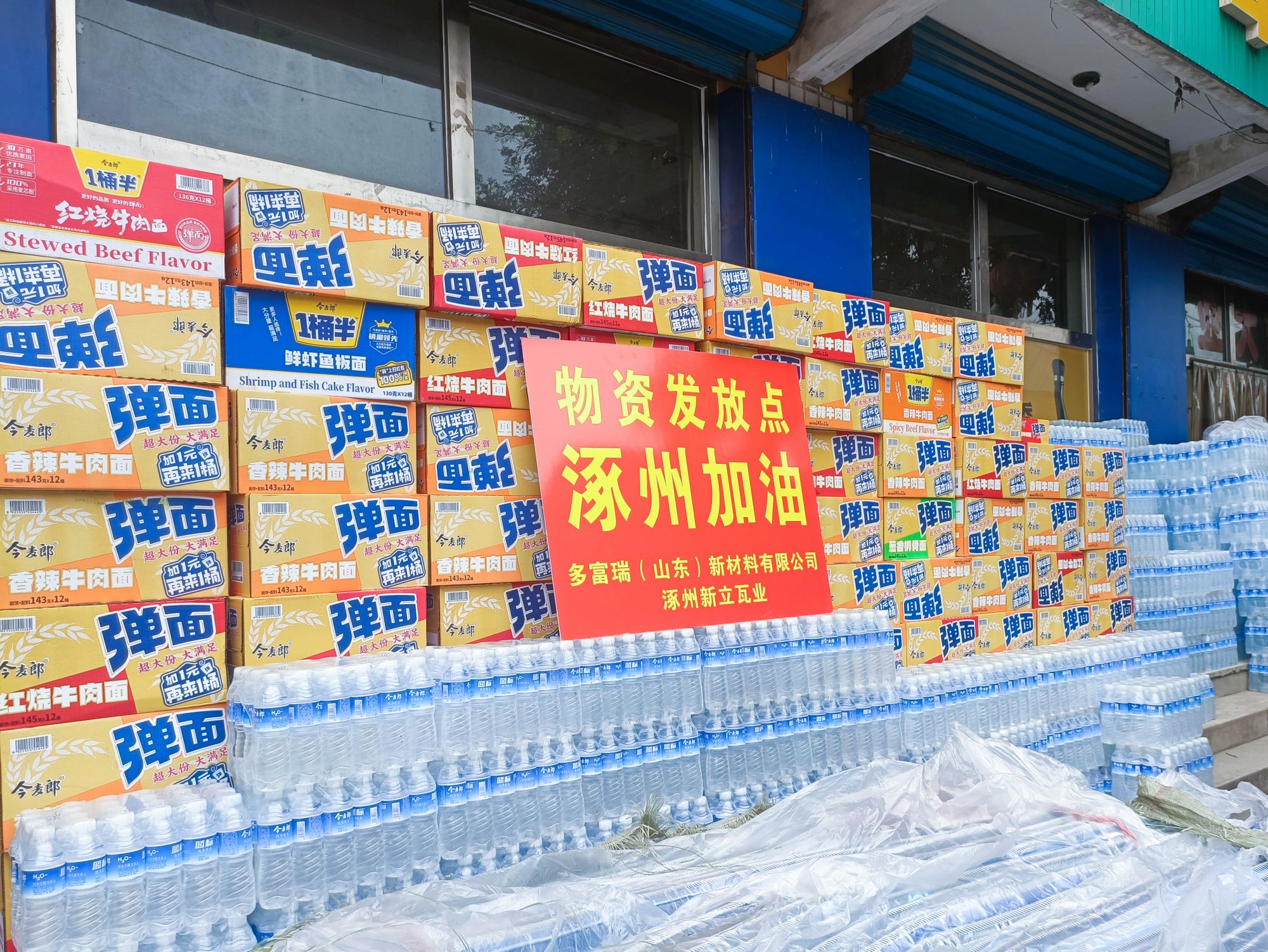 受臺風影響,京津冀遭遇極端強降雨,涿州成為洪澇救援的重災區。面對突然而來的自然災害,多富瑞組織專人專車,董事長趙民先生親自帶隊,攜帶兩車廂食品、飲用水、生活用品奔赴災區一線,馳援涿州。